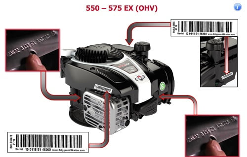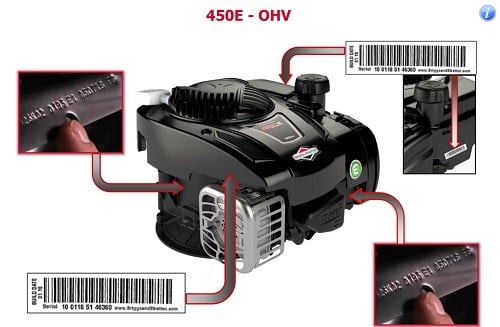 Dlatego jeżeli szukasz części zamiennych do silnika Briggs&Stratton, zanim udasz się do najbliższego serwisu, musisz najpierw znaleźć Model Type Code, na poniższych zdjęciach znajdziesz odpowiedź na pytanie gdzie szukać oznaczeń silnika Briggs& Stratton: