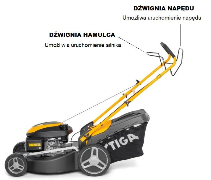 Dopiero kiedy naciśniesz drugą dźwignię, uruchomisz napęd. Dopóki nie chwycisz dźwigni od napędu, musisz pchać kosiarkę spalinową. Tak samo jest z cofaniem. Faktycznie, gdy kosiarka posiada napęd i jest on włączony, nie wykonasz manewru cofania. Po wyłączeniu dźwigni, odpowiedzialnej za napęd, śmiało cofniesz przy włączonym silniku i nożach. Chociaż niektóre kosiarki lekko wyczuwalny opór przy cofaniu.