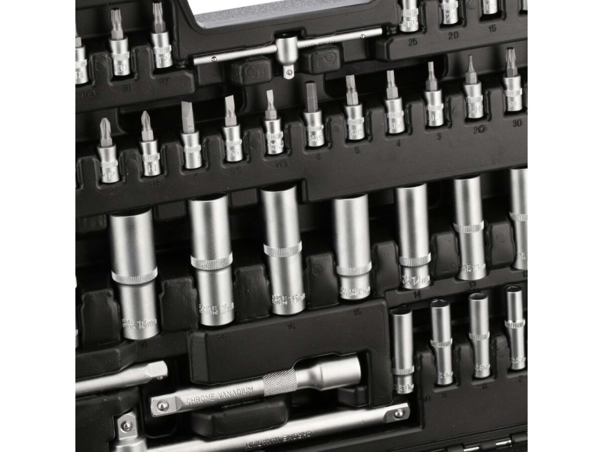 Zestaw kluczy nasadowych oraz nasadek ze stali chromowo-wanadowej – 171 elementów