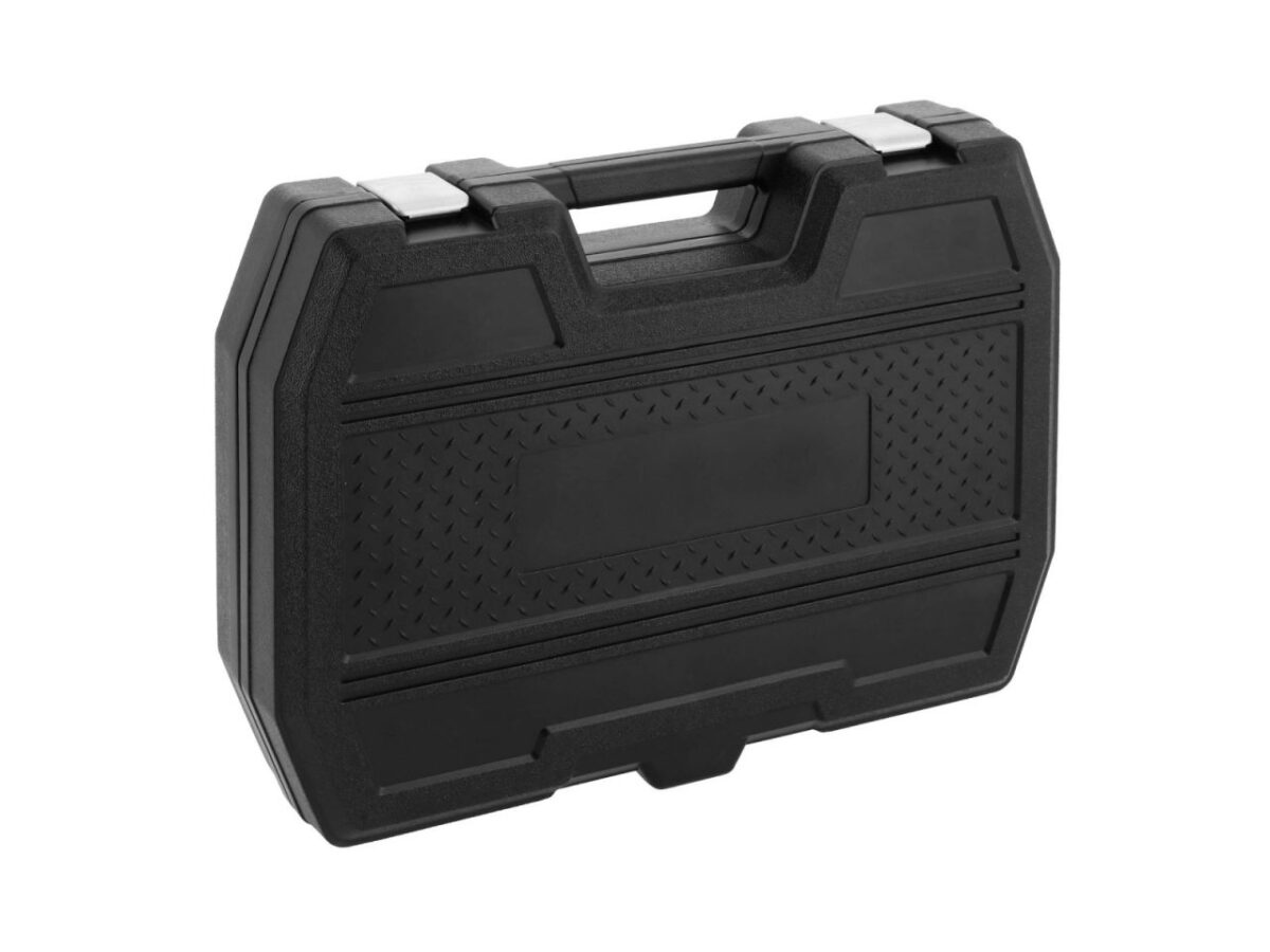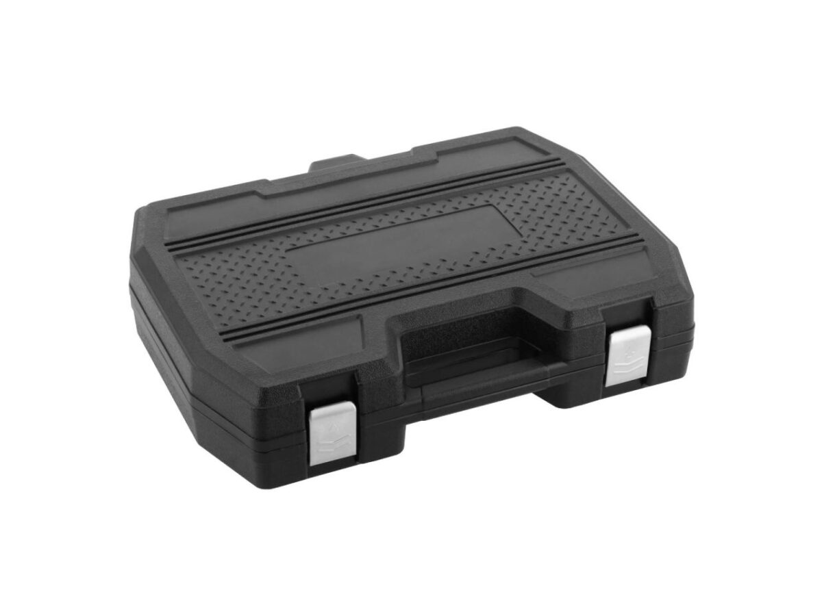 I Narzędzia zapakowane w wytrzymałą walizkę z tworzywa sztucznego ze wzmocnionymi narożnikami.