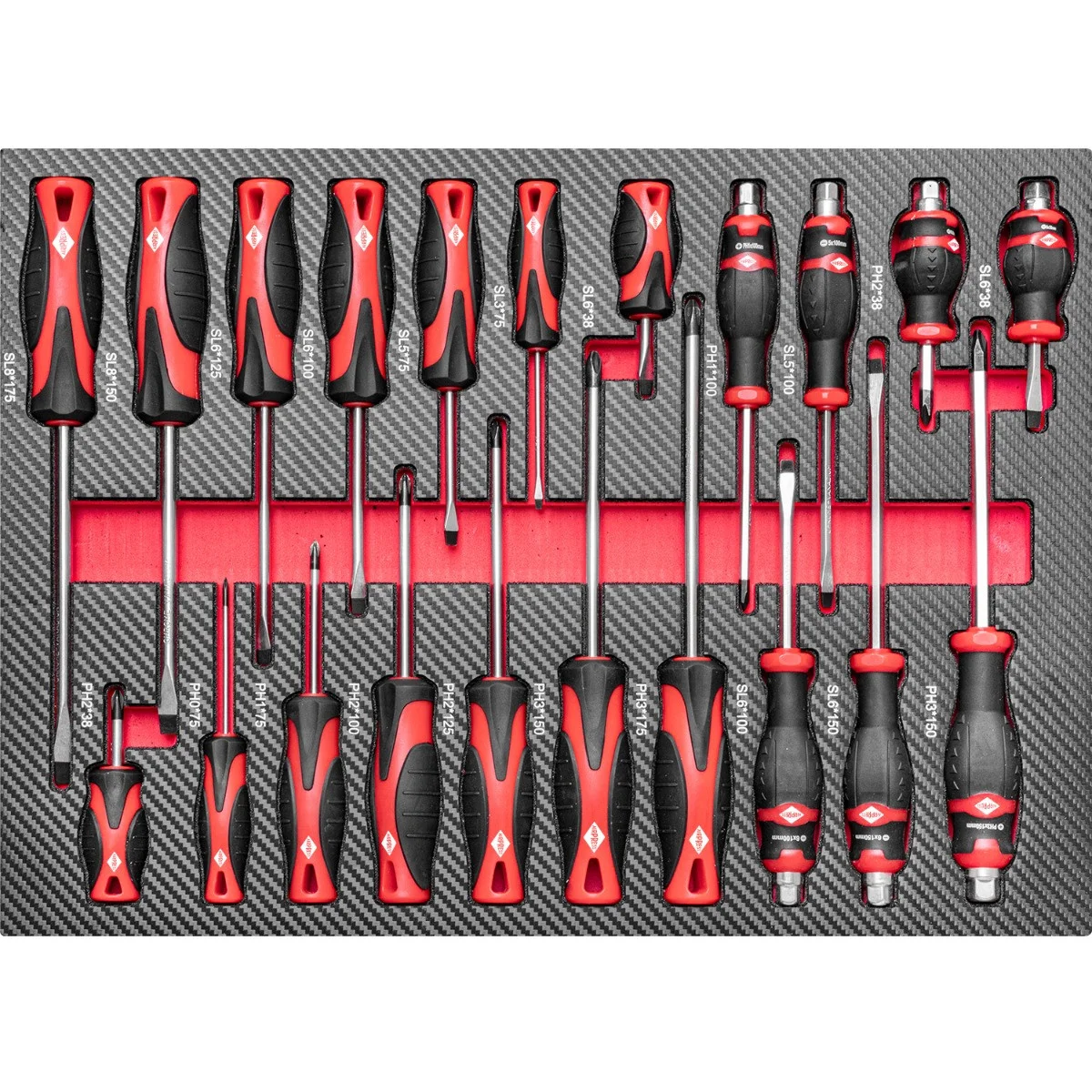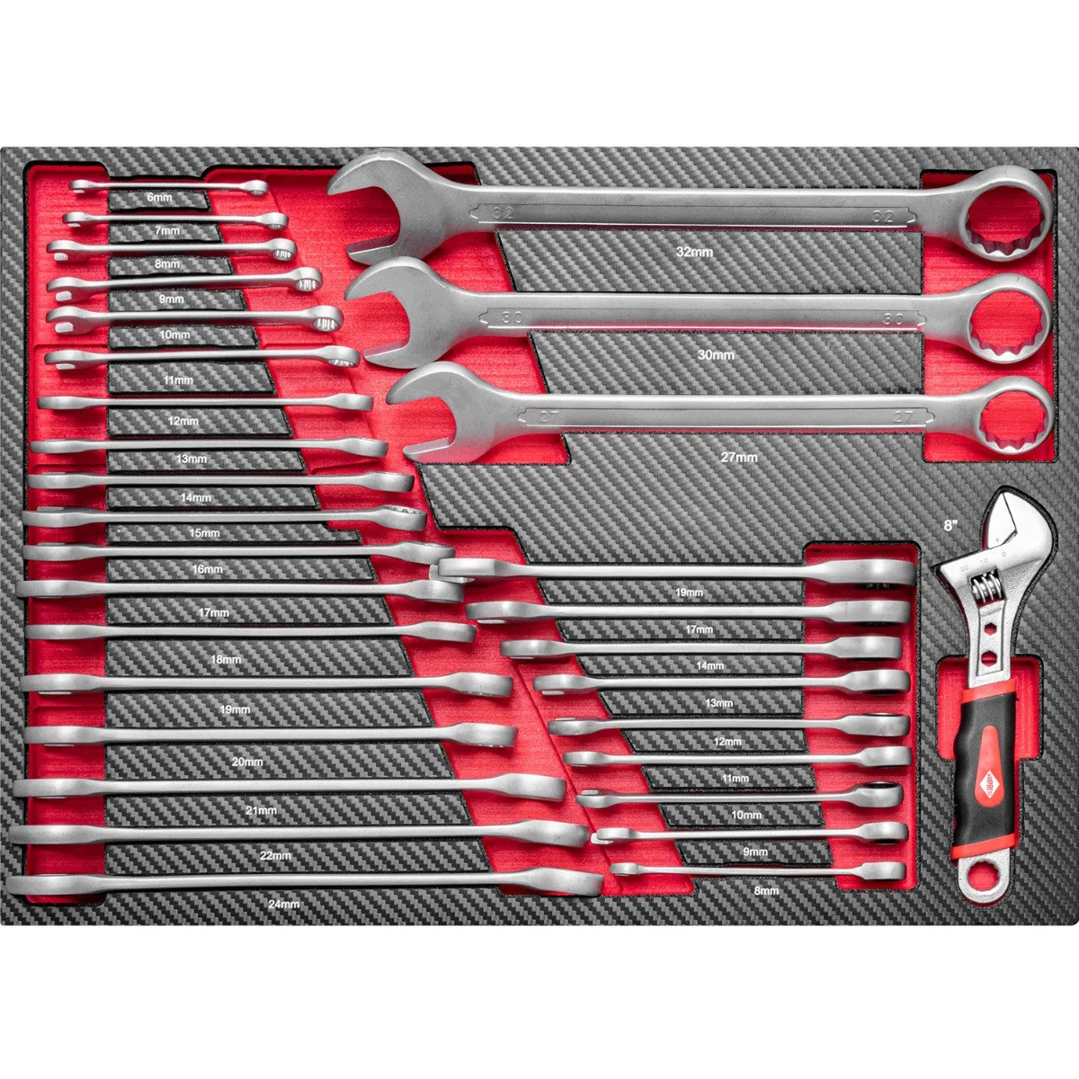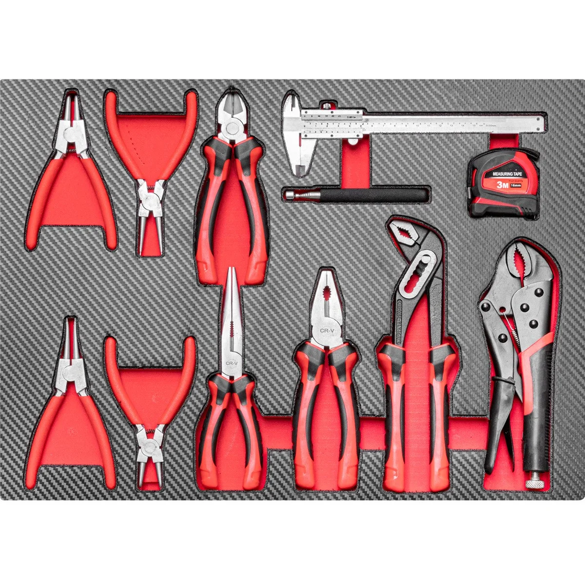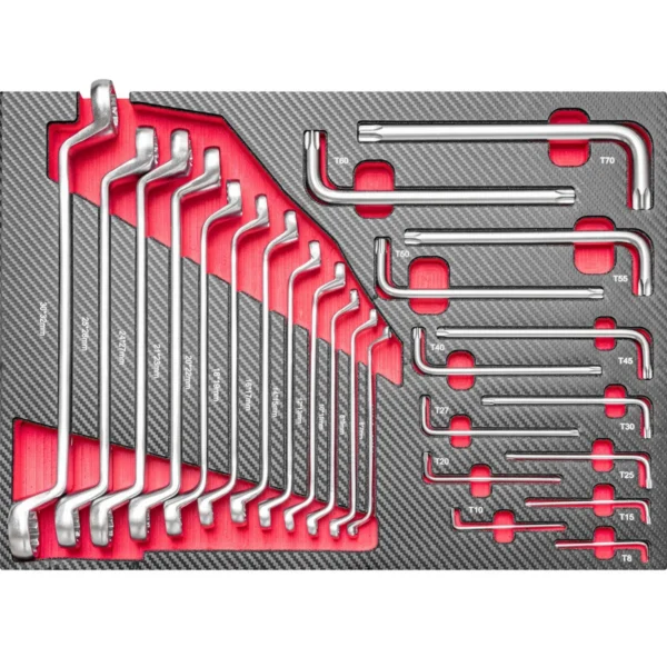 I Narzędzia umieszczone w łatwych w czyszczeniu wkładach piankowych, pokrytych olejoodporną warstwą z poliwęglanu.