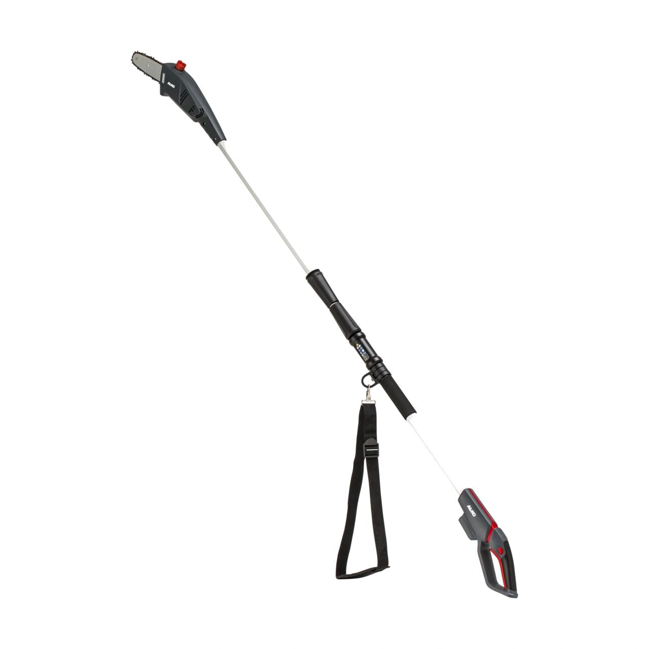 Teleskopowy trzonek można regulować w zakresie od 210 do 260 cm. Dzięki temu łatwiej dosięgnąć do wyżej położonych gałęzi bez używania klasycznej pilarki ręcznej na krótkim uchwycie.