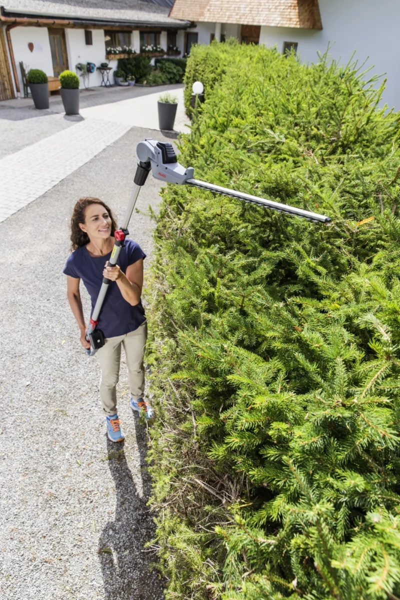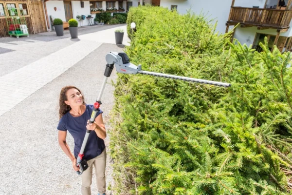 I Lekkie i poręczne akumulatorowe nożyce do żywopłotu na wysięgniku.