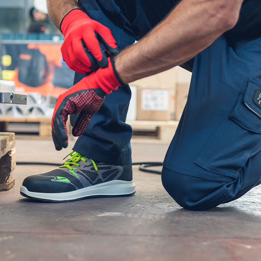 Buty robocze Pilot to propozycja dla profesjonalistów, którzy potrzebują niezawodnego obuwia ochronnego do pracy w dynamicznych i wymagających warunkach. Dzięki zastosowaniu nowoczesnej tkaniny K-Knit, model ten łączy wyjątkową lekkość, elastyczność i oddychalność z solidną konstrukcją spełniającą normy S1P SRC.