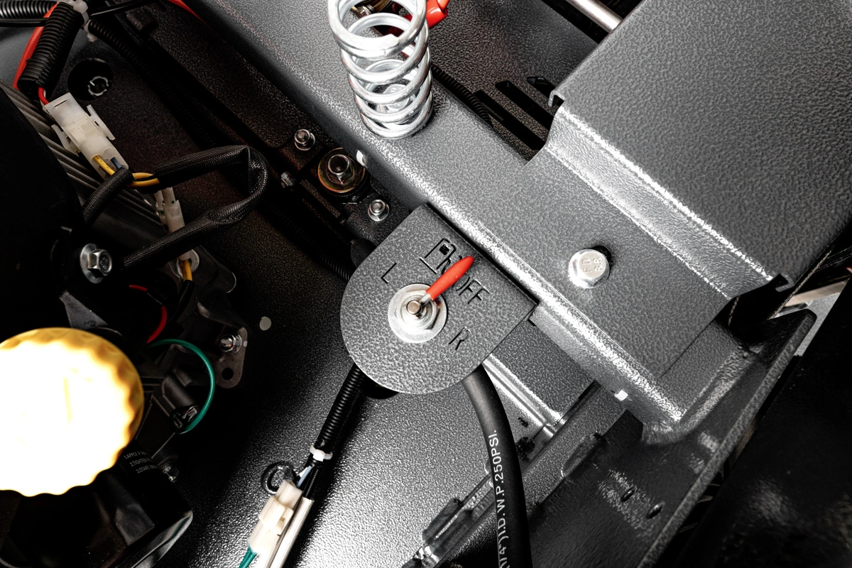 Za napęd odpowiada wydajny silnik V-Twin o mocy 24,5 KM od renomowanej marki Loncin, który został przystosowany do pracy pod dużym obciążeniem. Przede wszystkim jednostka utrzymuje stabilne obroty, nawet wtedy, gdy trawa stawia większy opór. Dzięki temu koszenie przebiega równomiernie na całej powierzchni, niezależnie od warunków terenowych. Co istotne, stała moc silnika przekłada się na płynność jazdy oraz przewidywalną reakcję maszyny. W rezultacie na dużych obszarach można zachować stałe tempo pracy bez spadków wydajności.