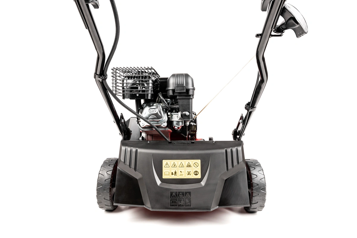 Model napędza spalinowy silnik o pojemności 212 cm³, który zapewnia odpowiedni zapas mocy nawet wtedy, gdy trawnik jest mocno „zafilcowany”. Dzięki temu urządzenie radzi sobie nie tylko z lekką pielęgnacją murawy, ale także z bardziej wymagającą regeneracją darni. Co ważne, napęd spalinowy daje pełną swobodę pracy, ponieważ nie wymaga kabla ani dostępu do gniazdka elektrycznego. W praktyce oznacza to możliwość pracy w dowolnym miejscu działki, bez ograniczeń związanych z długością przewodu. Dzięki temu zabieg wertykulacji przebiega sprawnie i bez niepotrzebnych przerw.