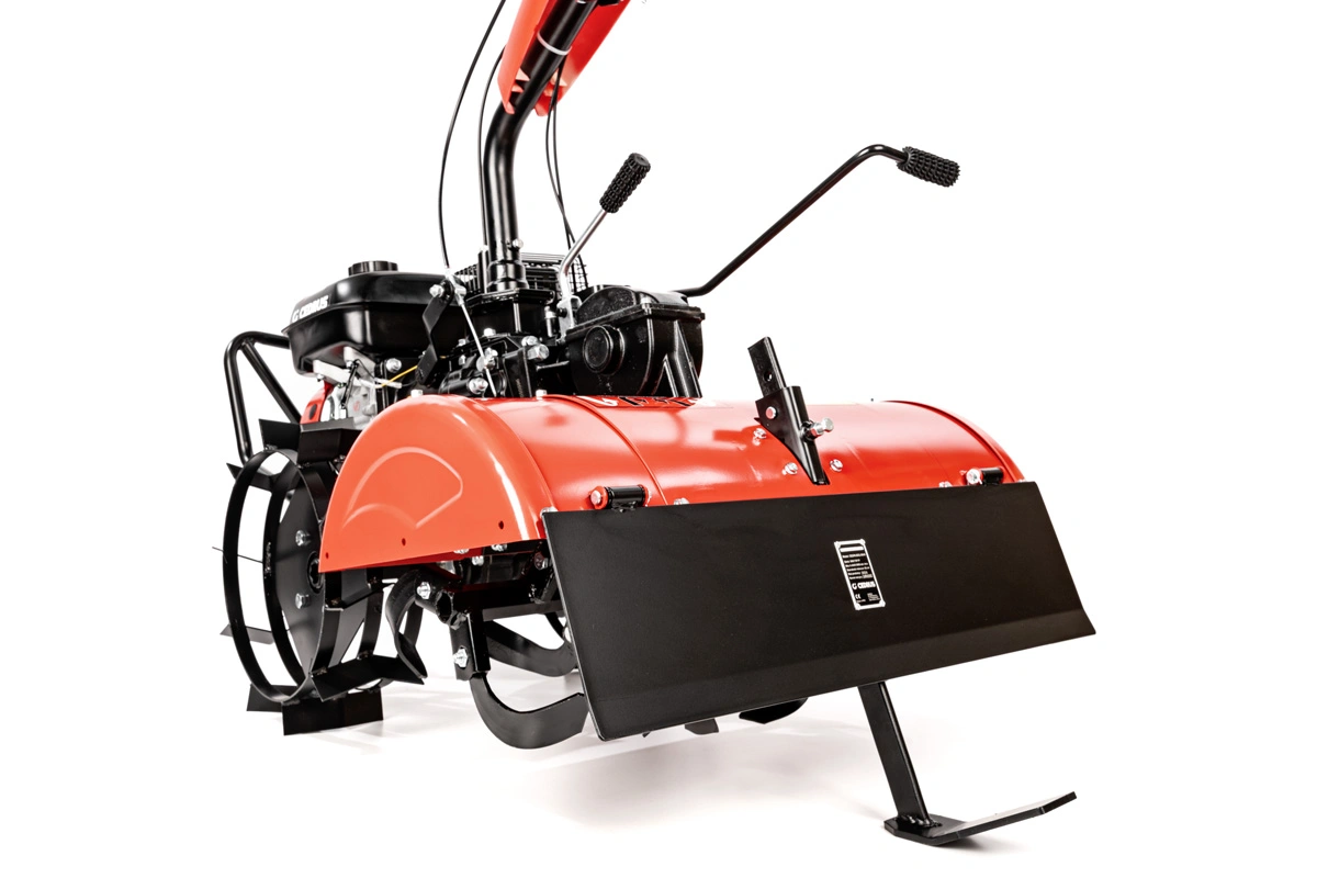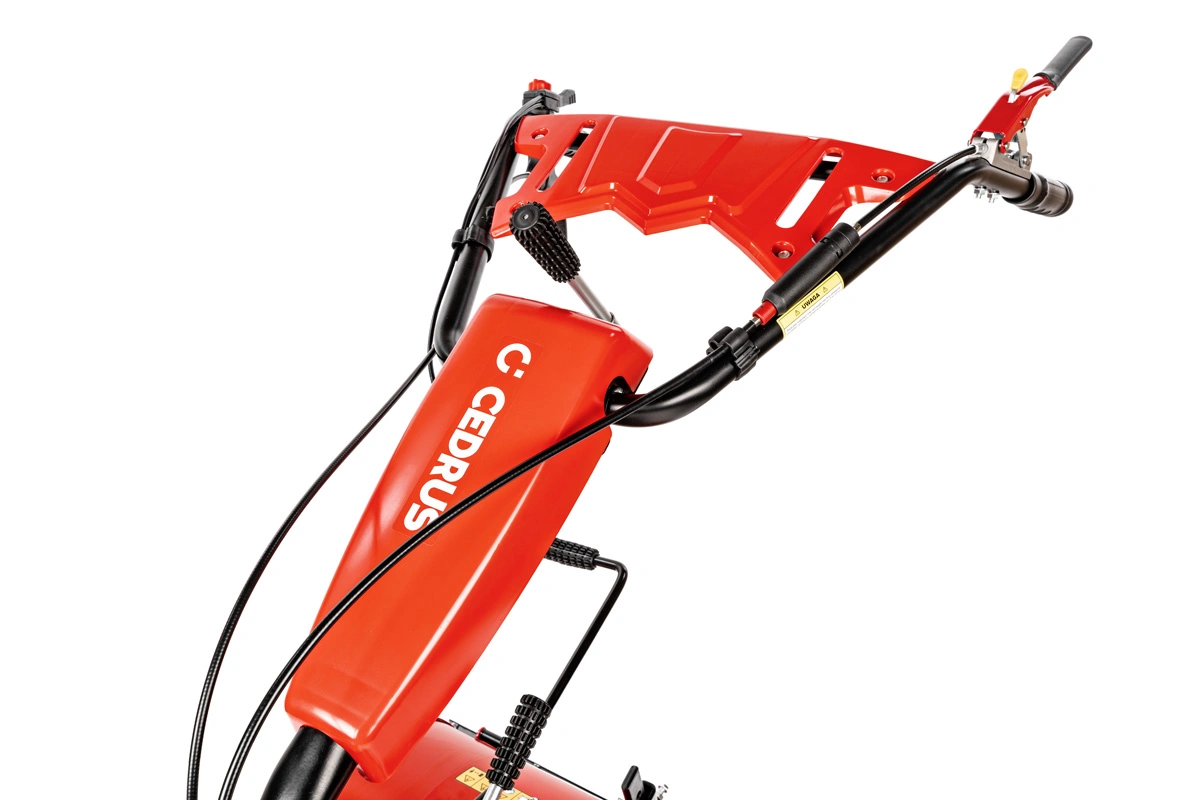 Trwałość glebogryzarki Cedrus GLX640 gwarantuje przekładnia zębata, dlatego maszyna przenosi duże siły bez problemu. Ponadto żeliwny korpus zwiększa odporność konstrukcji na obciążenia. Dodatkowy przeciwciężar poprawia wyważenie oraz bezpieczeństwo pracy. Regulowana rękojeść umożliwia dopasowanie wysokości do wzrostu operatora, dzięki czemu obsługa jest ergonomiczna. Co więcej, dodatkowy bieg transportowy ułatwia przemieszczanie urządzenia. W rezultacie gumowe koła skutecznie amortyzują siły powstające podczas pracy.