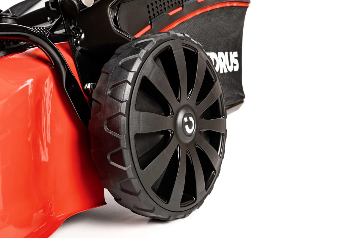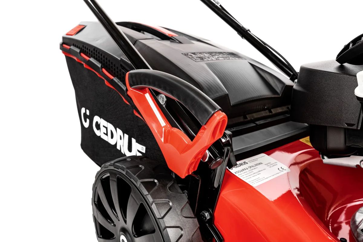 Kosiarka Cedrus KS48S-H oferuje centralną regulację wysokości koszenia, którą zmienisz jednym ruchem dzięki mechanizmowi sprężynowemu. Ergonomiczny uchwyt z miękkim wykończeniem można regulować pod kątem wzrostu użytkownika, co znacząco zwiększa komfort pracy. Duże, łożyskowane koła zapewniają płynne prowadzenie, chroniąc jednocześnie delikatną murawę. Napęd sprawia, że nawet większe powierzchnie kosimy bez wysiłku.