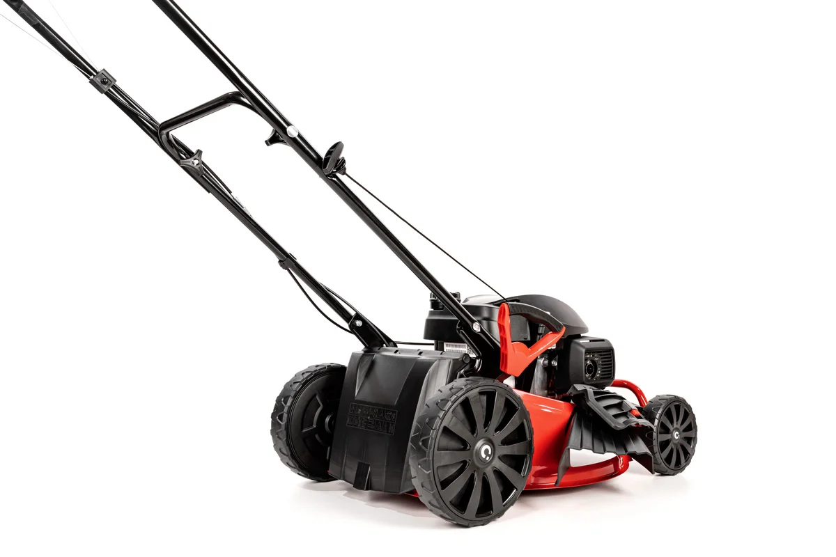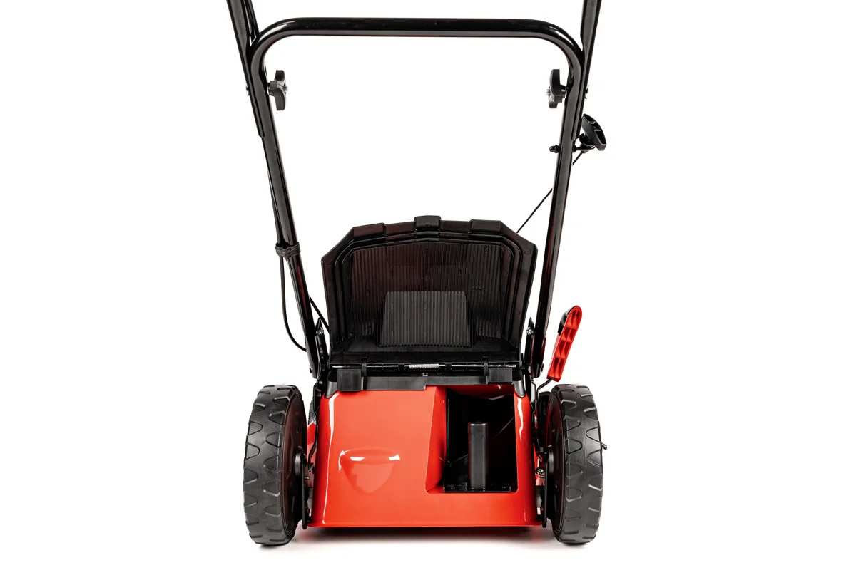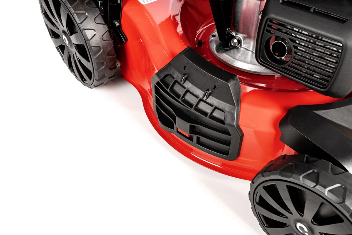 Pojemny 65-litrowy kosz siatkowy z plastikową pokrywą i wskaźnikiem napełnienia umożliwia dłuższą pracę bez przerw. Aerodynamiczne prowadzenie powietrza gwarantuje jego optymalne wypełnienie, a duży otwór i uchwyt transportowy ułatwiają szybkie i higieniczne opróżnianie. Dzięki specjalnej budowie kosiarki, koła nie wystają poza obrys obudowy – możesz swobodnie kosić przy murach i ogrodzeniach, bez potrzeby dodatkowego podkaszania.