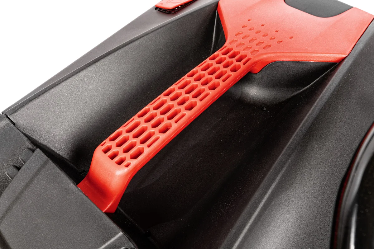 Kosiarka została wyposażona w trwały, aluminiowy agregat tnący o szerokości 53 cm, odporny na korozję i uszkodzenia, a przy tym lżejszy od stalowych odpowiedników. Doskonale sprawdzi się na trawnikach o powierzchni od 1000 do 3000 m², zapewniając szybkie i efektywne koszenie. Wysokość koszenia regulujesz centralnie w 6 poziomach (25–75 mm), co pozwala na idealne dopasowanie do warunków panujących na Twoim trawniku.