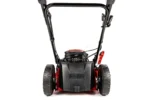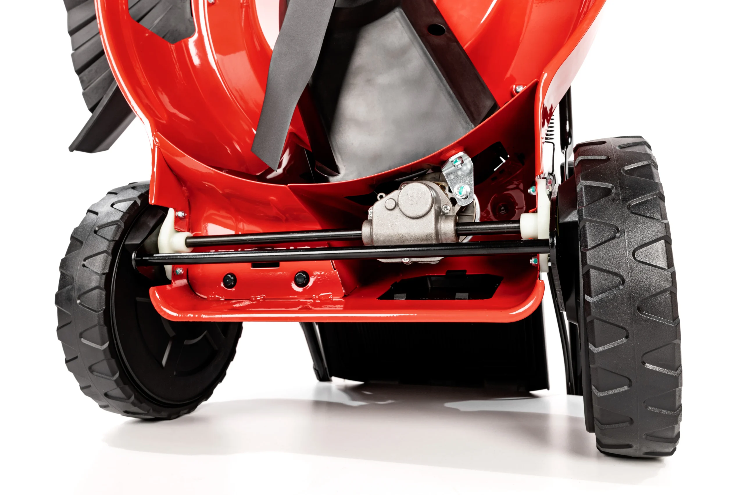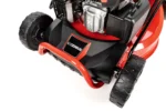 Stalowa obudowa, duże koła na łożyskach kulkowych i praktyczny uchwyt transportowy z przodu to gwarancja trwałości, wygody i łatwości przenoszenia. Zintegrowane złącze do mycia agregatu sprawia, że utrzymanie kosiarki w czystości po skończonej pracy to kwestia kilku chwil. Wystarczy podłączyć wąż ogrodowy i uruchomić silnik – czystość zapewniona!