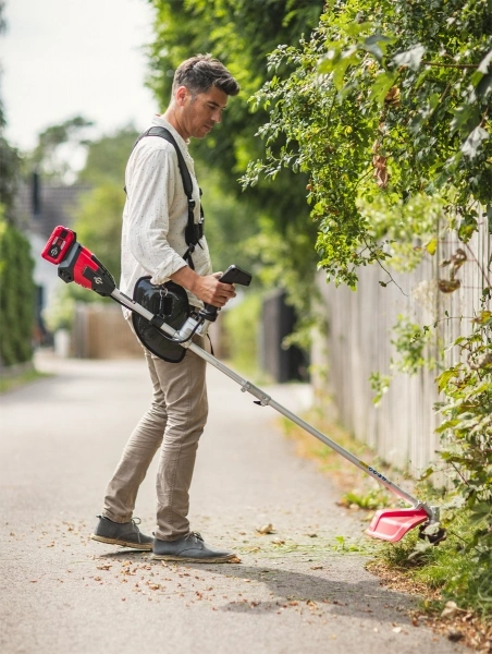 Uchwyt typu U poprawia kontrolę, dlatego prowadzenie narzędzia jest naturalne. Ponadto dołączony pas nośny odciąża plecy podczas pracy. Dzięki temu nawet dłuższe koszenie pozostaje komfortowe. Co więcej, dobre wyważenie ułatwia manewrowanie. W efekcie docierasz do trudniejszych miejsc bez wysiłku. Dodatkowo konstrukcja sprzyja precyzyjnemu wykańczaniu krawędzi.