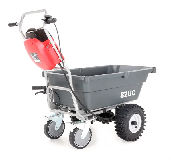Cramer 82UC to nowoczesny, akumulatorowy wózek transportowy 82V, który znacząco ułatwia prace ogrodowe, budowlane oraz porządkowe. Dzięki temu użytkownik wykonuje swoje zadania szybciej i jednocześnie z większym komfortem. Co więcej, mocny napęd elektryczny oraz solidna konstrukcja pozwalają bez wysiłku przewozić ciężkie ładunki nawet po nierównym terenie. Ponadto, cicha praca, brak emisji spalin i dlatego wysoka wydajność sprawiają, że to idealne rozwiązanie do użytku profesjonalnego jak również domowego. Dodatkowo, urządzenie sprzedawane jest bez akumulatora i ładowarki, dzięki czemu można korzystać z już posiadanych elementów systemu Cramer 82V.