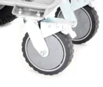 - ✔ Duże, bieżnikowane koła zapewniają przyczepność na różnych powierzchniach, a tylne koła samonastawne zwiększają zwrotność.