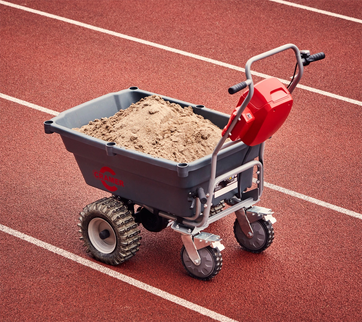 - ✔ Akumulatorowy wózek transportowy Cramer 82UC przeznaczony do profesjonalnych zastosowań terenowych i budowlanych.