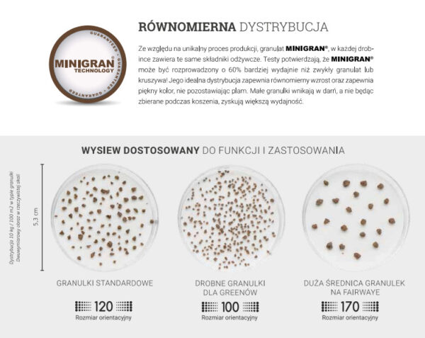 ✅ Granulat MINIGRAN® – doskonała dystrybucja nawozu w glebie, nawet do 60% lepsze pokrycie niż w przypadku tradycyjnych nawozów.