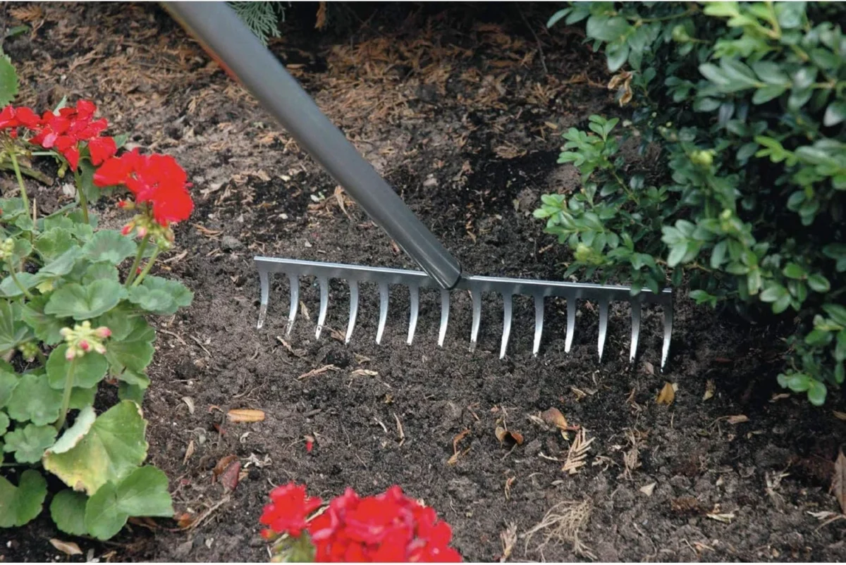 Lekki, aluminiowy trzonek sprawia, że grabie są nie tylko wytrzymałe, ale także łatwe w obsłudze. Dzięki temu możesz pracować przez dłuższy czas bez zmęczenia, ciesząc się pełną swobodą ruchu.