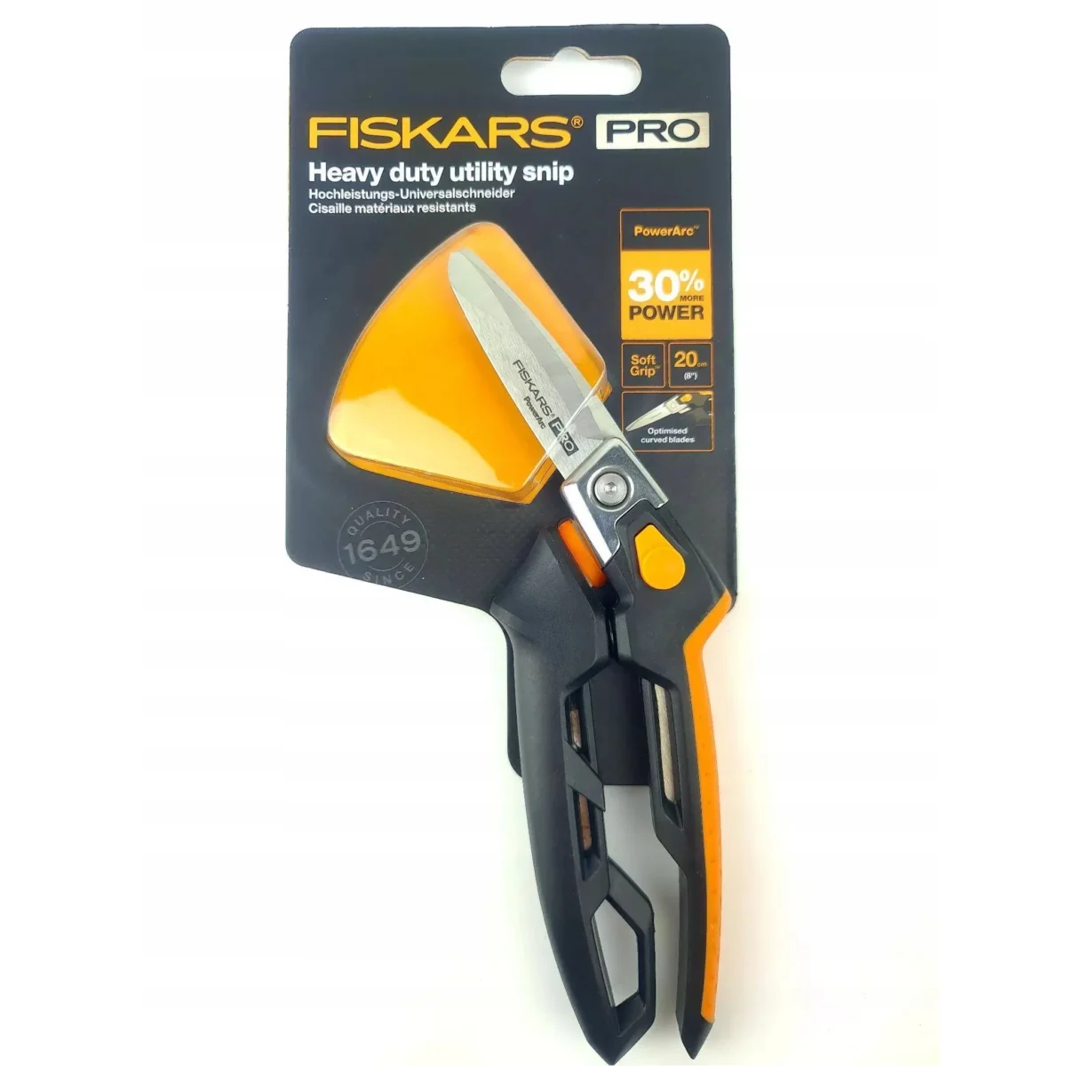 Fiskars Pro nożyce warsztatowe do trudnych zadań PowerArc™ to niezbędne narzędzie dla każdego profesjonalisty. Doskonale sprawdzają się podczas cięcia metali lekkich, rynien, izolacji, kartonu, okładzin winylowych, lin, powiązań linowych czy węży.