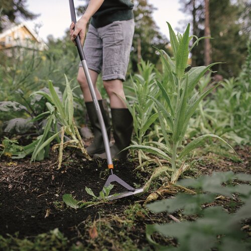 Specjalnie wyprofilowana, stalowa głowica umożliwia precyzyjne dotarcie do korzeni roślin bez naruszania struktury gleby wokół. Wygięty trzonek zapewnia naturalną pozycję dłoni i nadgarstka, ograniczając zmęczenie podczas długotrwałej pracy.