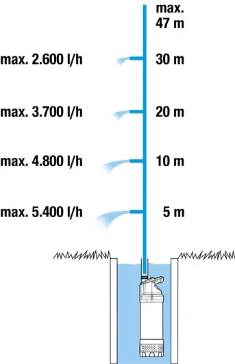 - ✔ Stabilna praca w studniach, cysternach i zbiornikach o większej głębokości.