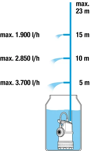 - ✔ Pompa zanurzeniowo-ciśnieniowa do podlewania i przepompowywania wody.