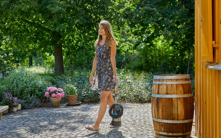 - ✔ Wydajna pompa do wykorzystania deszczówki z beczek i zbiorników.
