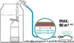 Korpus ze stali nierdzewnej inox ma wąską średnicę około 149 mm, dlatego pompa pasuje do typowych beczek. Ponadto sprawdzi się w głębszych pojemnikach, więc łatwiej wykorzystasz zgromadzoną wodę. Wydajność do 4700 l/h i silnik 550 W wspierają zraszanie, dlatego podłączysz pistolet i większe zraszacze. Dzięki temu zasilisz także modele z rodziny AquaZoom, gdy potrzebujesz szerszego zasięgu. Dwustopniowy układ hydrauliczny zapewnia do 2,3 bara, więc praca z dłuższym wężem jest pewniejsza. W rezultacie pompa nadaje się do podlewania oraz do sprawnego przepompowywania wody.