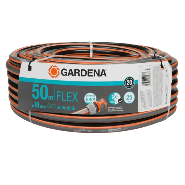 GARDENA Comfort FLEX 19 mm (3/4″) 50 m (18055-20) ma profil Power Grip, który poprawia dopasowanie węża do złączki. Dzięki temu połączenie jest szczelne i stabilne, a ryzyko rozszczelnienia podczas pracy wyraźnie maleje. Dodatkowo wąż łatwiej się zwija i ma lepszy poślizg, co ułatwia codzienne podlewanie. W efekcie praca jest płynniejsza i mniej „nerwowa” nawet na długim odcinku.