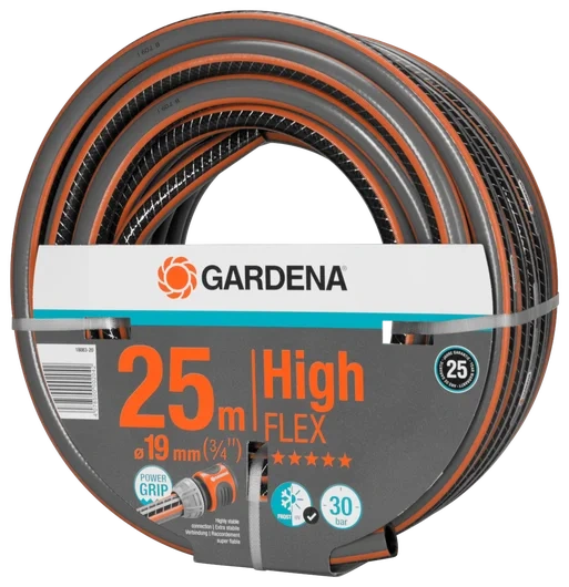 GARDENA Comfort HighFLEX 19 mm (3/4″) 25 m posiada profil Power Grip, dlatego zapewnia stabilne połączenie ze złączką. Dzięki temu wąż szczelnie trzyma się końcówki i ogranicza ryzyko wycieków. Ponadto użytkownik może bezpiecznie pracować przy wyższym ciśnieniu wody. Co więcej, wąż łatwiej się zwija i nie sprawia problemów w przechowywaniu. Dodatkowo powierzchnia umożliwia sprawne przesuwanie po podłożu.