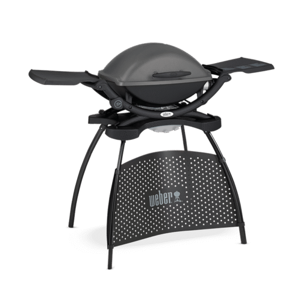 Grill elektryczny Weber Q 2400 Stand zachwyca swoją elegancką oraz wytrzymałą konstrukcją osadzoną na równie solidnym stojaku wyposażonym w cztery nogi gwarantując niezwykłą stabilność. Dodatkowo grill można w dowolnym momencie w bardzo prosty sposób zdemontować ze stojaka – wystarczy chwycić grill za boczne uchwyty. Ponadto kabel zasilający o długości 1,8 m, termometr w pokrywie oraz 3 wieszaki na akcesoria kuchenne umożliwiają na niesamowicie komfortowe użytkowanie grilla Weber Q 2400 Stand.