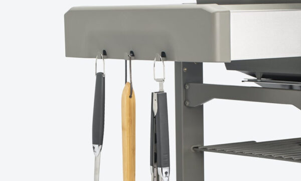 Grill wyposażony został w innowacyjny, składany ruszt do podgrzewania potraw Tuck-Away.
