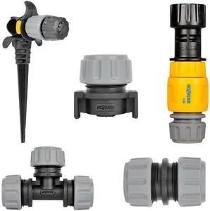 - Zawiera reduktor ciśnienia, wąż elastyczny 15 m x 13 mm, 10 x zraszaczy uniwersalnych, 5 klipsow uszczelniających, 2 x zaślepki, 1 x złączkę prostą oraz 1 x trójnik