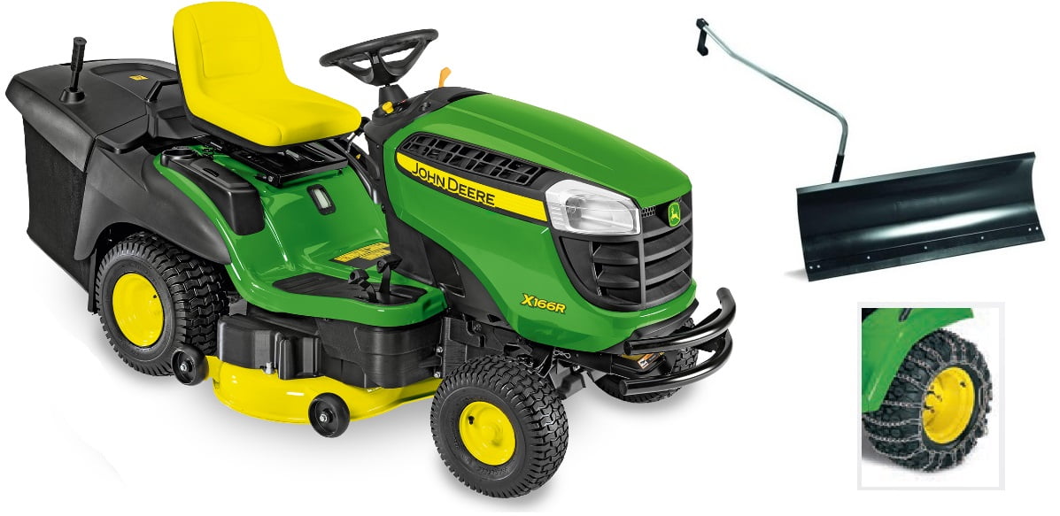 Model kosiarki samojezdnej X166R zaprojektowano dla klientów, którzy wymagają najwyższej jakości produktu do koszenia oraz zbierania skoszonej trawy i liści. Agregat koszący 107 cm (42 cale) świetnie się sprawdza w czasie koszenia i zbierania ściętej trawy. Zdejmowanie kosza jest bardzo proste, a sam kosz można zamienić na opcjonalny deflektor oraz zaślepkę mulczującą, gdy zbieranie materiału nie jest wymagane. Tylny zaczep umożliwia podłączenie różnorodnych narzędzi do rozmaitych zadań związanych z pielęgnacją trawników.