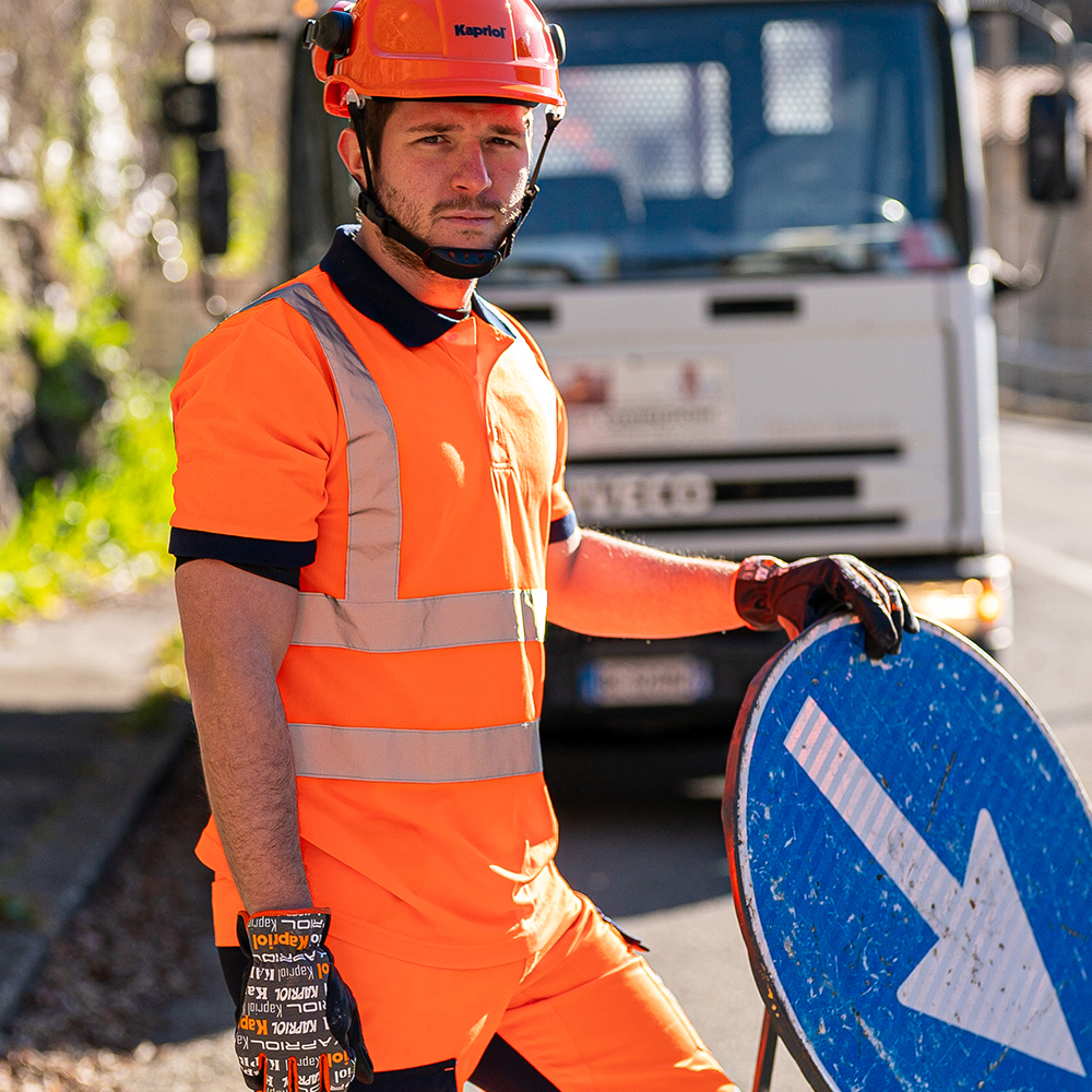 Koszulka posiada klasyczny kołnierzyk zapinany na guziki, co nadaje jej bardziej formalny, ale wciąż roboczy charakter – idealna na spotkania z klientami, inspekcje terenowe lub pracę w logistyce i technice. Energetyczny pomarańczowy kolor poprawia widoczność i sprawia, że pracownik prezentuje się profesjonalnie, ale bez utraty komfortu.