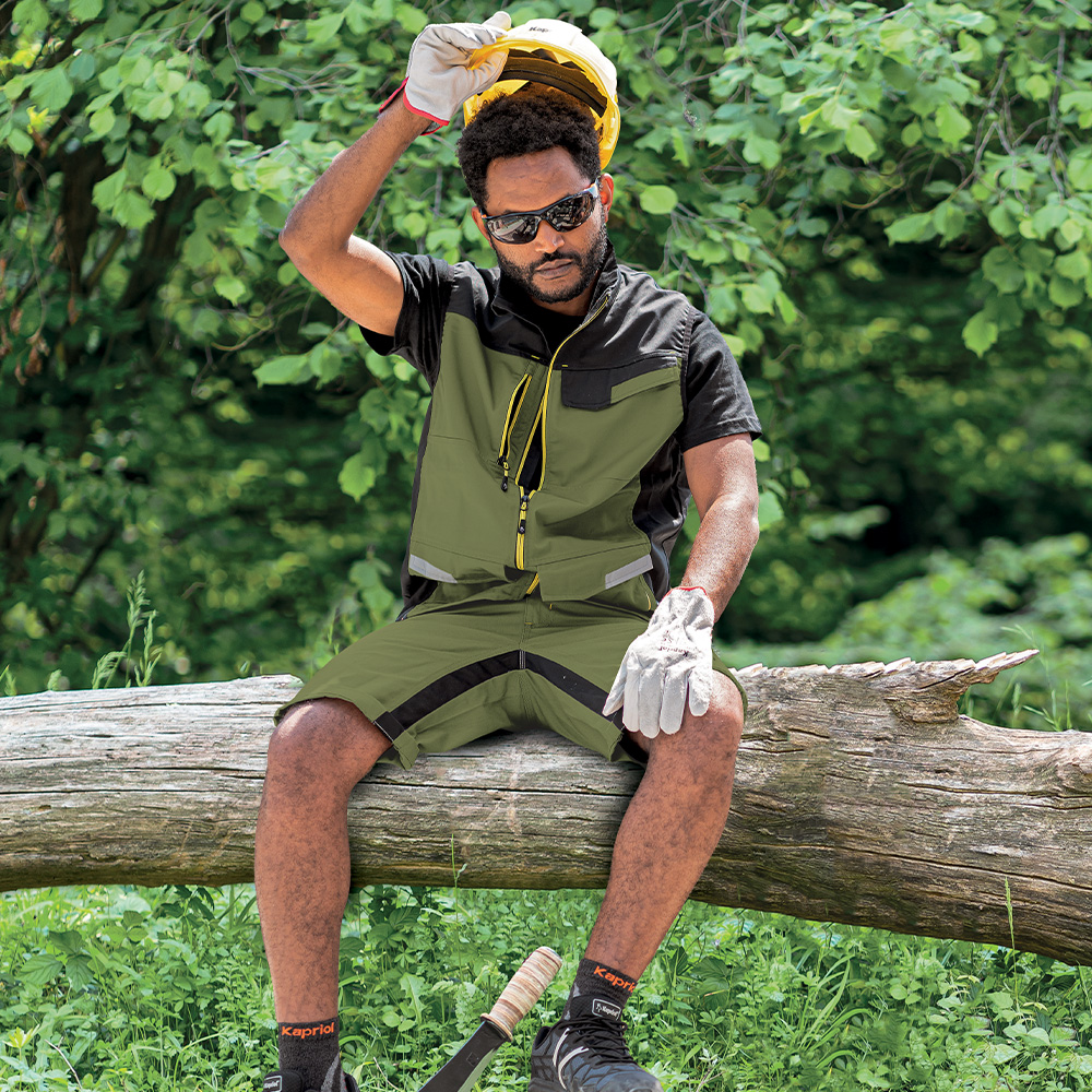 Zielony kolor to estetyczna alternatywa dla tradycyjnej odzieży roboczej, która dobrze komponuje się z kamizelkami i koszulkami roboczymi Kapriol. To niezawodne rozwiązanie dla monterów, techników, budowlańców i pracowników logistyki.