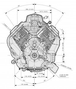 Typ silnikaAir-cooled, 4-stroke, V-twin, Vertical shaft, OHV