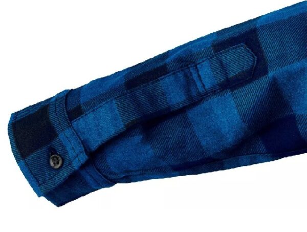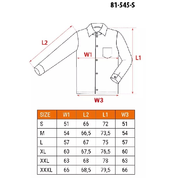 Koszula posiada lekko usztywniany kołnierzyk 👔, który dobrze trzyma formę, oraz klasyczne zapięcie na guziki 🔘. Praktyczna kieszeń na piersi pozwala mieć pod ręką drobne przedmioty 🛠️, a mankiety zapinane na guziki ułatwiają podwinięcie rękawów podczas pracy.