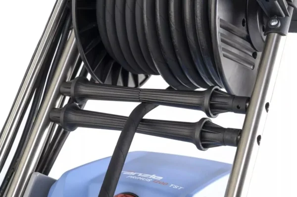 Primus 1000 TST posiada 20-metrowy wąż wysokociśnieniowy z podwójnym stalowym zbrojeniem, umieszczony na bębnie z hamulcem. Co więcej, innowacyjne wspomaganie zwijania sprawia, że obsługa węża staje się łatwa i szybka. Dzięki temu możesz rozwijać i zwijać wąż niemal bez wysiłku. Dodatkowo końcówka obrotowa oraz system Twist-Stop zapobiegają skręcaniu przewodu. Dzięki temu wąż pracuje dłużej i nie sprawia problemów podczas użytkowania.