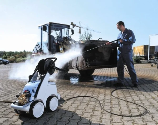 Myjka dobrze sprawdza się przy czyszczeniu pojazdów, maszyn, elewacji, tarasów, płyt chodnikowych, obór, zbiorników i kanałów. To model przeznaczony do bardziej wymagającej, regularnej eksploatacji.