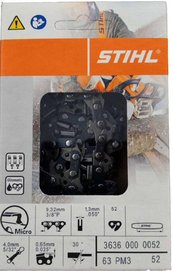 Łańcuch tnący STIHL 63PM3 to wysokiej jakości łańcuch do lekkich pilarek spalinowych i akumulatorowych, stworzony z myślą o precyzyjnym i bezpiecznym cięciu. Wykorzystuje technologię Picco Micro 3 (PM3), która zapewnia wyjątkowo niskie wibracje, ograniczoną tendencję do odbicia oraz płynne prowadzenie łańcucha podczas pracy.