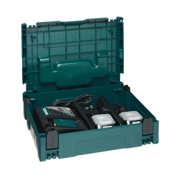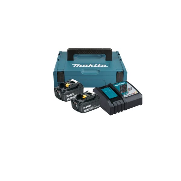 I Zawartość zestawu: 2 akumulatory BL1850B + ładowarka DC18RA + walizka systemowa MAKPAC.