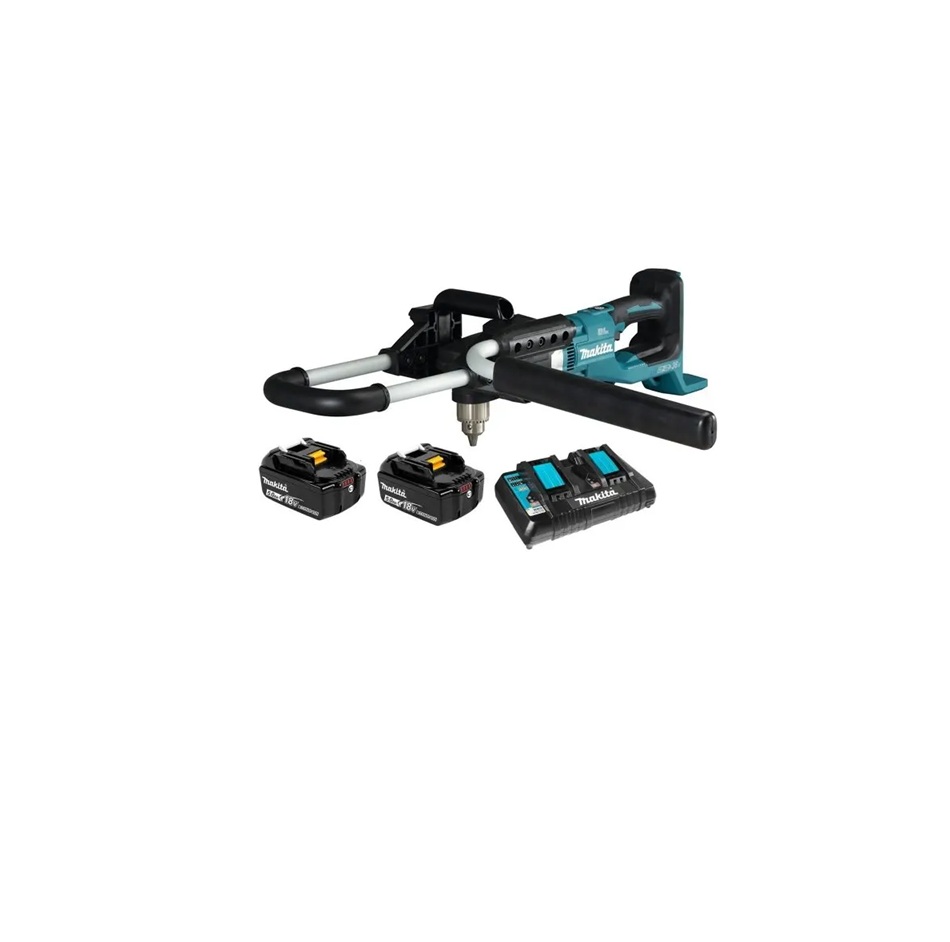 Wysokowydajna wiertnica glebowa Makita DDG460t2X7 wyposażona została w bezszczotkowy silnik zasilany dwoma bateriami Li-Ion 18V LXT (Produkt dostarczany z dwoma akumulatorami i dwuportową ładowarką). Dodatkowo narzędzie zabezpieczone zostało przed przeciążeniem, przegrzaniem, a także nadmiernym rozładowaniem akumulatorów. Ponadto urządzenie automatycznie wyłączy się po 5 minutach bezczynności zapobiegając nadmiernej eksploatacji.