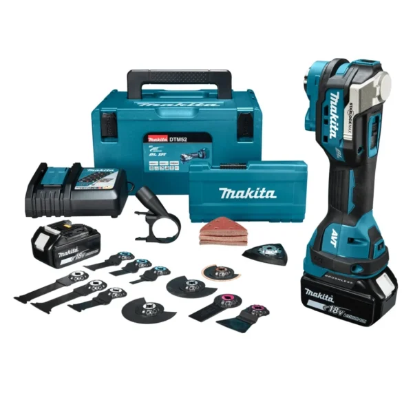 Gotowy na wszechstronność i wydajność? Poznaj nasze nowe, poręczne narzędzie wielofunkcyjne 18 V LXT® – Makita DTM52RFJX2, stworzone do różnorodnych zastosowań w Twojej pracy.