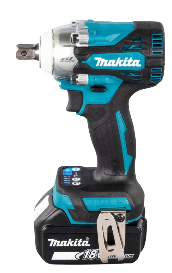 Makita DTW301RTJ posiada podwójną diodę LED z funkcją opóźnionego wygaszania, dlatego doskonale oświetla miejsce pracy. Dzięki temu użytkownik może pracować precyzyjnie nawet przy słabym oświetleniu. Ergonomiczny uchwyt oraz wąska rękojeść zapewniają pewny chwyt i wygodę podczas długiego użytkowania. Co więcej, konstrukcja urządzenia umożliwia pełną kontrolę w każdej pozycji roboczej. Klucz oferuje również system ochrony akumulatora, który automatycznie odcina zasilanie przy niskim poziomie energii. Dzięki temu rozwiązaniu ogniwa pozostają zabezpieczone przed przegrzaniem lub trwałym uszkodzeniem. Zarówno ergonomia, jak i funkcjonalność przekładają się na wysoki komfort pracy.