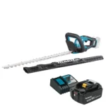 Makita DUH606RT to bardzo praktyczna konfiguracja dla użytkownika, który chce od razu otrzymać wydajny i gotowy do pracy zestaw. W tej wersji dostajesz nie tylko same nożyce, ale również akumulator BL1850B 5,0 Ah, ładowarkę DC18RC oraz osłonę ostrza 600 mm. Dzięki temu nie musisz osobno kompletować podstawowych elementów zasilania i możesz od razu przejść do pracy w ogrodzie.