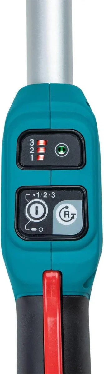 Model Makita DUN500WZ wyposażono w ostrze o długości 50 cm, które umożliwia szybkie i równe cięcia nawet przy gęstych gałęziach. Trzystopniowa elektroniczna regulacja częstotliwości skoków pozwala dobrać prędkość pracy do rodzaju roślinności. Dzięki temu można precyzyjnie przycinać zarówno delikatne żywopłoty, jak i grubsze gałęzie. Dodatkowo sześciostopniowa regulacja kąta głowicy tnącej (45°, 22.5°, 0°, –22.5°, –45°, –70°) pozwala wygodnie dopasować pozycję roboczą do kształtu i wysokości roślin. W rezultacie praca staje się płynna, precyzyjna i mniej męcząca.