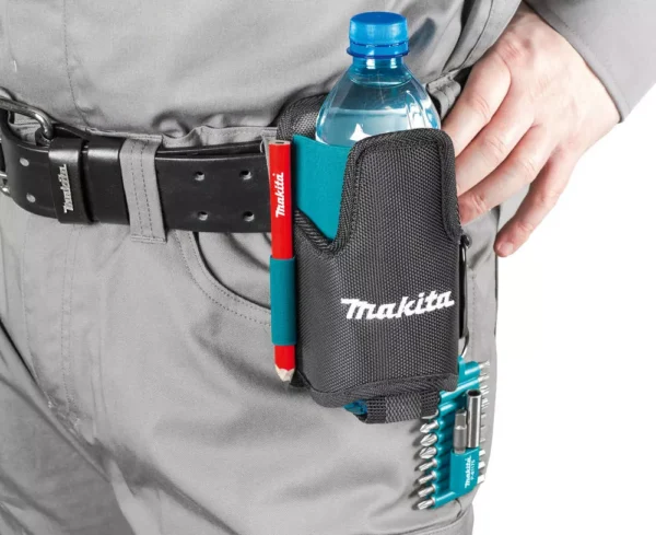 – Dzięki specjalnemu uchwytowi kabura może być przymocowana do pasa systemowego Makity lub zwykłego paska przy spodniach.