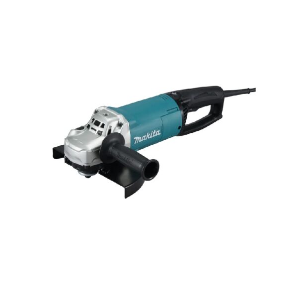 Przeznaczona do profesjonalnych i ciężkich prac, sieciowa szlifierka kątowa GA9063R firmy Makita, to wydajne urządzenie z całkowicie nową wersją włącznika, który został bardziej uszczelniony przed opiłkami metalu. Proste w obsłudze narzędzie z łagodnym rozruchem oferuje także przełącznik blokowany w pozycji „wyłączony” oraz włączony” z funkcją anty-restart zabezpieczającą przed przypadkowym uruchomieniem. Szlifierka kątowa Makita GA9063R wyposażona została w niezawodny silnik o mocy 2200 W. Dodatkowo sztywna obudowa silnika wykonana została ze specjalnych materiałów o ograniczonej absorbcji wody z powietrza. Ponadto innowacyjny system łagodnego rozruchu ogranicza pobór prądu rozruchowego, dzięki czemu maszyna nie szarpie podczas startu, a instalacja elektryczna nie jest zagrożona chwilowym przeciążeniom.