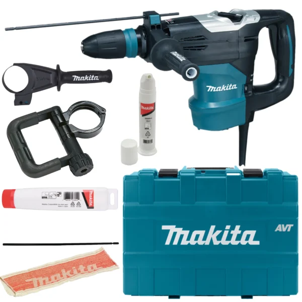 Makita HR4003C to profesjonalny młot udarowo-obrotowy SDS-MAX, zaprojektowany do ciężkich prac w betonie, kamieniu i murze. Dzięki dużej sile udaru oraz możliwości pracy w trybie kucia i wiercenia, narzędzie gwarantuje maksymalną efektywność w wymagających zastosowaniach budowlanych. System AVT (Anti-Vibration Technology) znacząco redukuje wibracje, zwiększając komfort i bezpieczeństwo pracy nawet przy długotrwałym użytkowaniu.