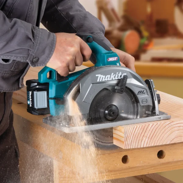 I Ręczna akumulatorowa pilarka tarczowa 190 mm, zasilana akumulatorem 40V max XGT, zapewniającym długi czas pracy.